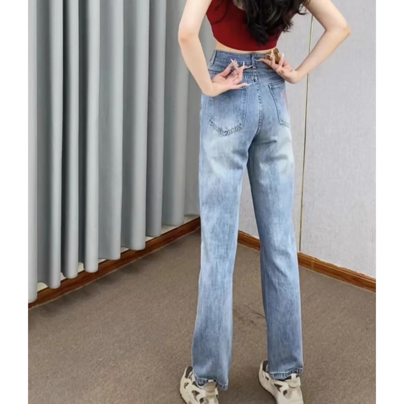 | nameOriginal | 2024 New Arrival Ripped Straight Leg Jeans Women's Spring and Summer New Arrival Fashionable Slimming Design Sense Loose Wide Leg Pants |