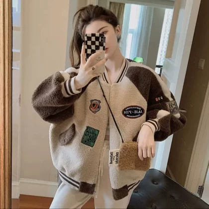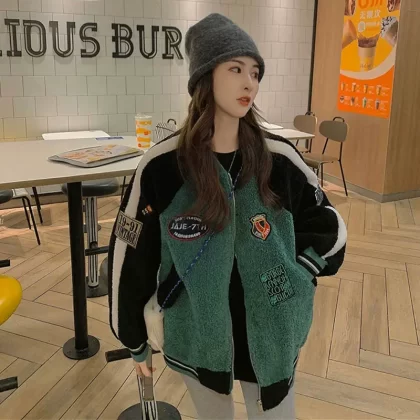 | nameOriginal | 2024 new autumn and winter Korean style baseball uniform thickened lamb wool jacket for women autumn and winter Korean style contrasting color loose and versatile style |