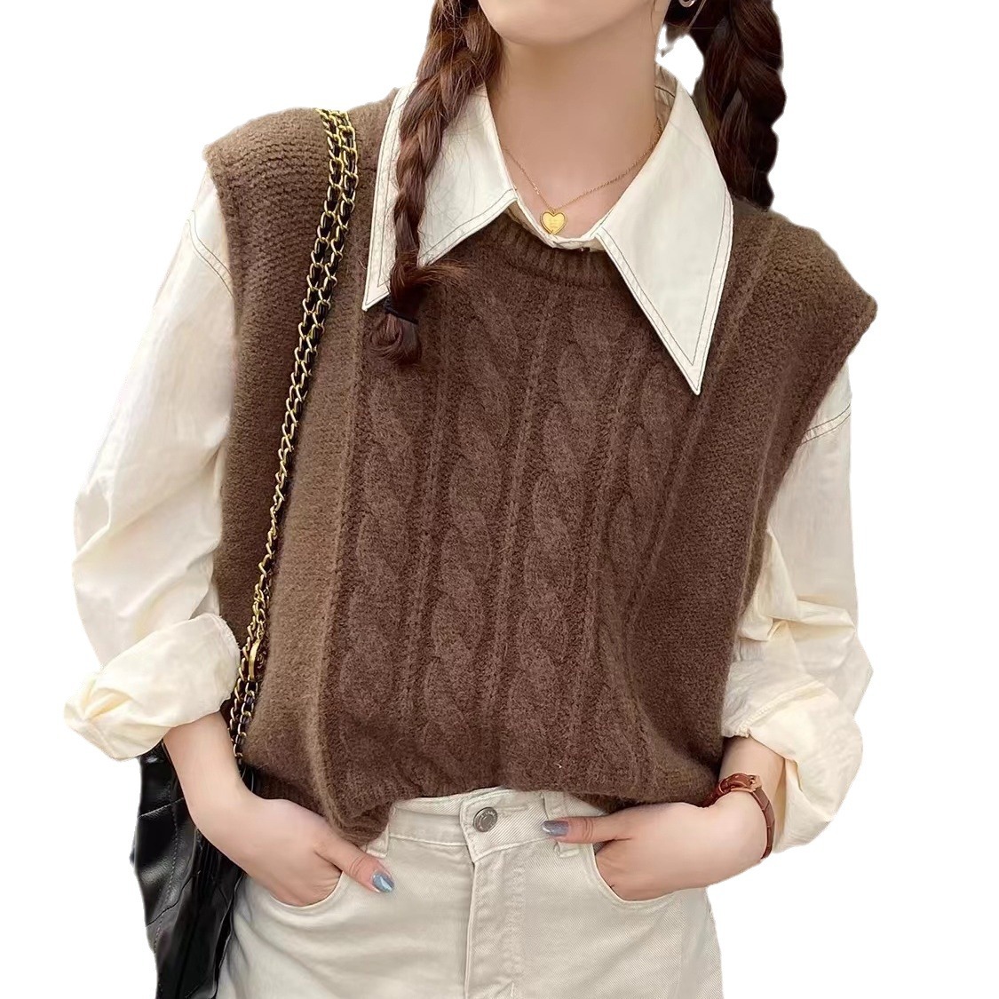 | nameOriginal | 2024 New Autumn and Winter Vintage Vest Women's Loose Lazy Style Sleeveless Stacked-up Outer Waistcoat All-match Knitted Vest |
