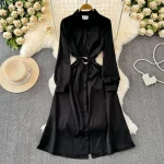 2024 new autumn clothing Korean style light and mature temperament belt waist dress women's design French long shirt dress