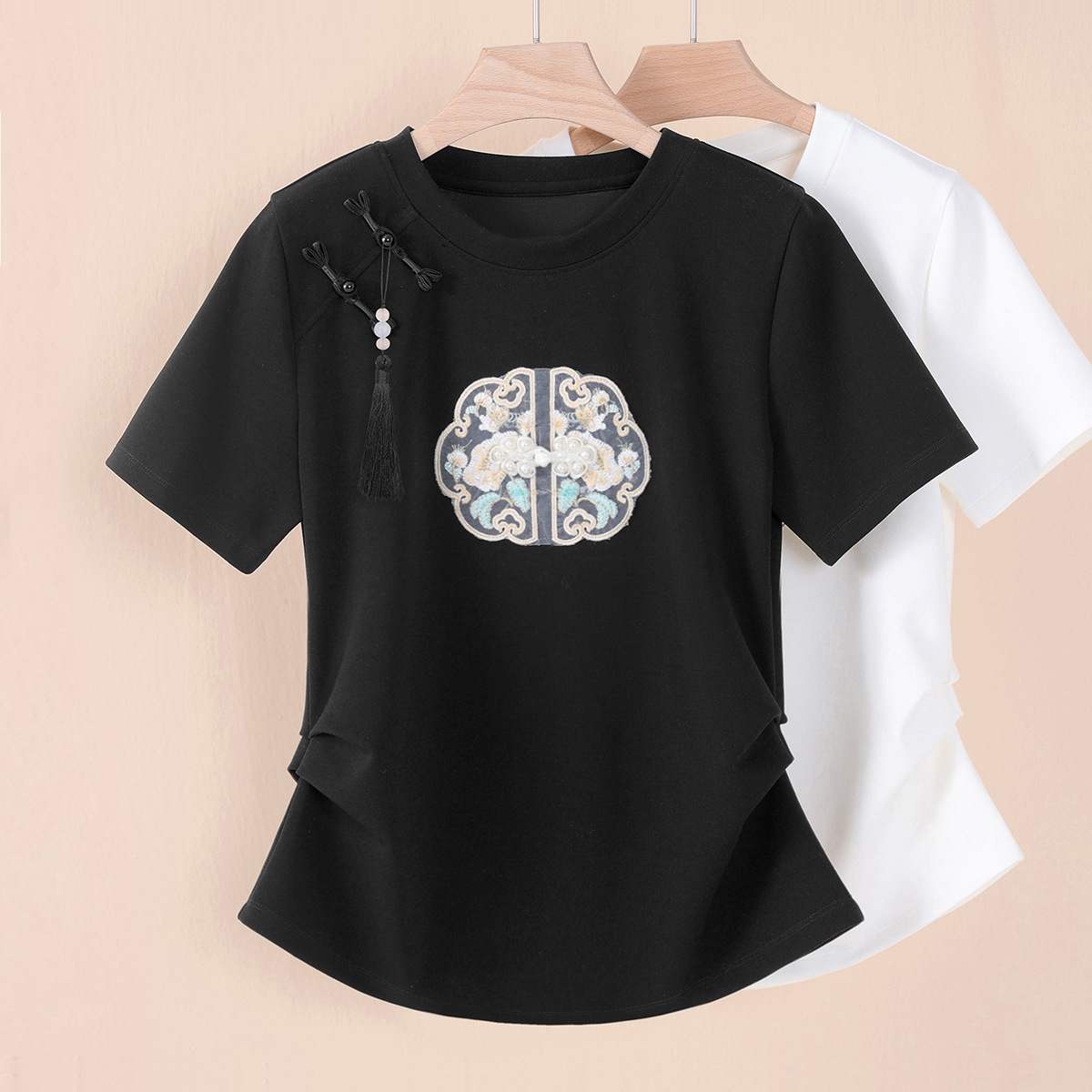 | nameOriginal | 2024 New Chinese style embroidered short-sleeved T-shirt women's spring and summer national style top chic Western style with vest dress clothes |