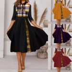 | nameOriginal | 2024 New Cross-border Women's Clothing Amazon AliExpress Shirt Collar Contrast Color Single-breasted Seven-point Sleeve Long Large Dress |