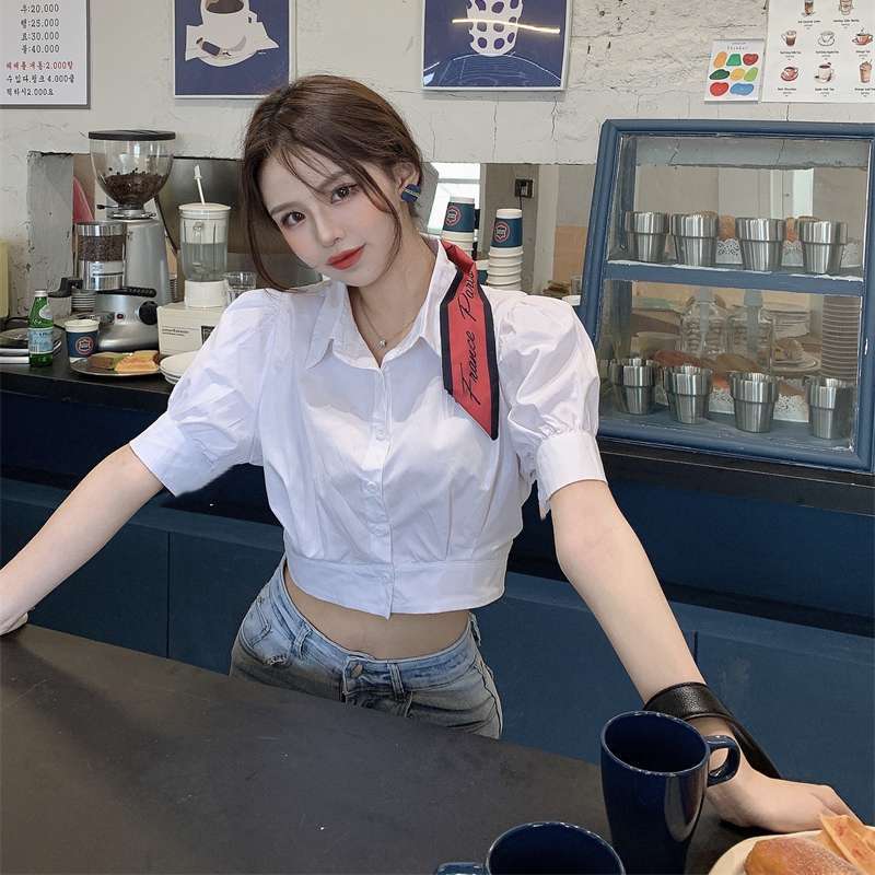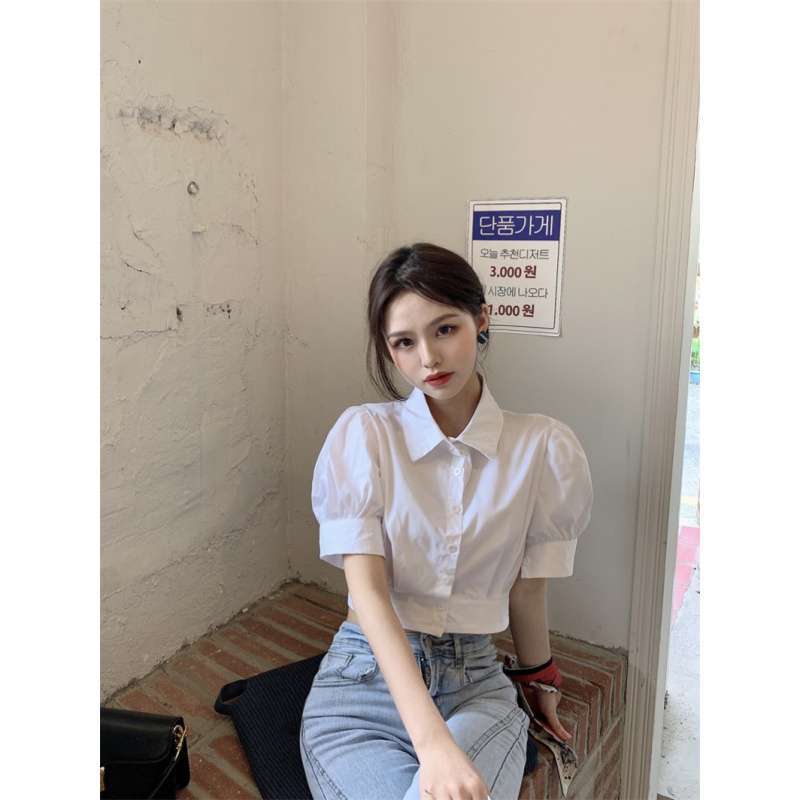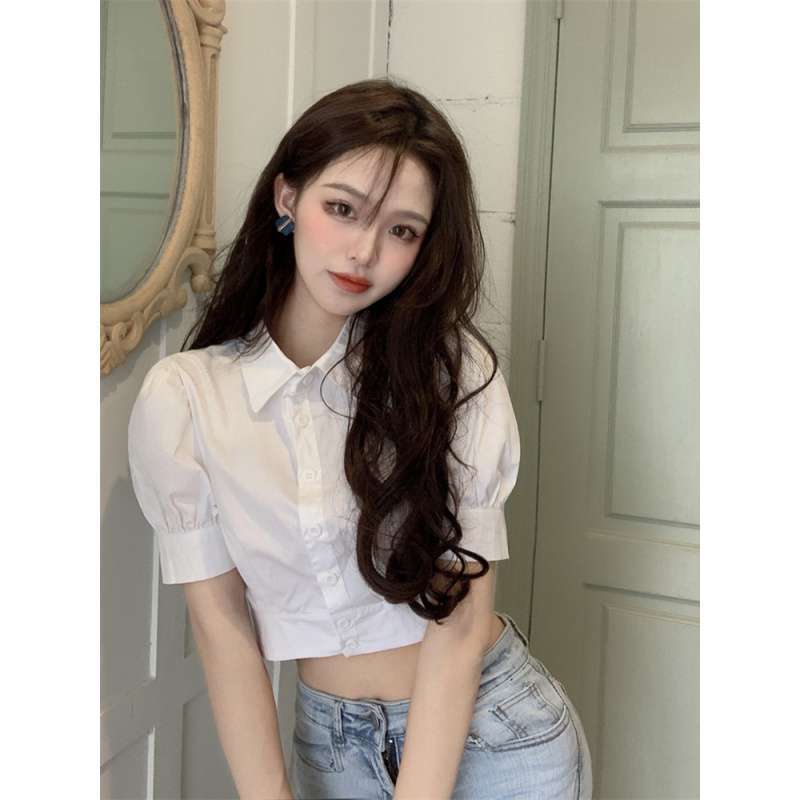 | nameOriginal | 2024 New Design Sense Niche Short-sleeved Bottoming Shirt Bubble Sleeve Short Shirt White Short Top for Summer |
