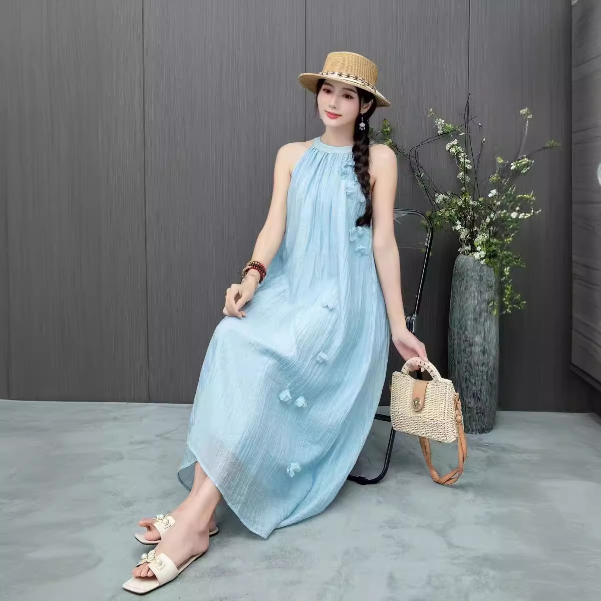 | nameOriginal | 2024 New French Niche Design Sense Embroidered Sweet Gentle Style Sling Dress Women's Wholesale |