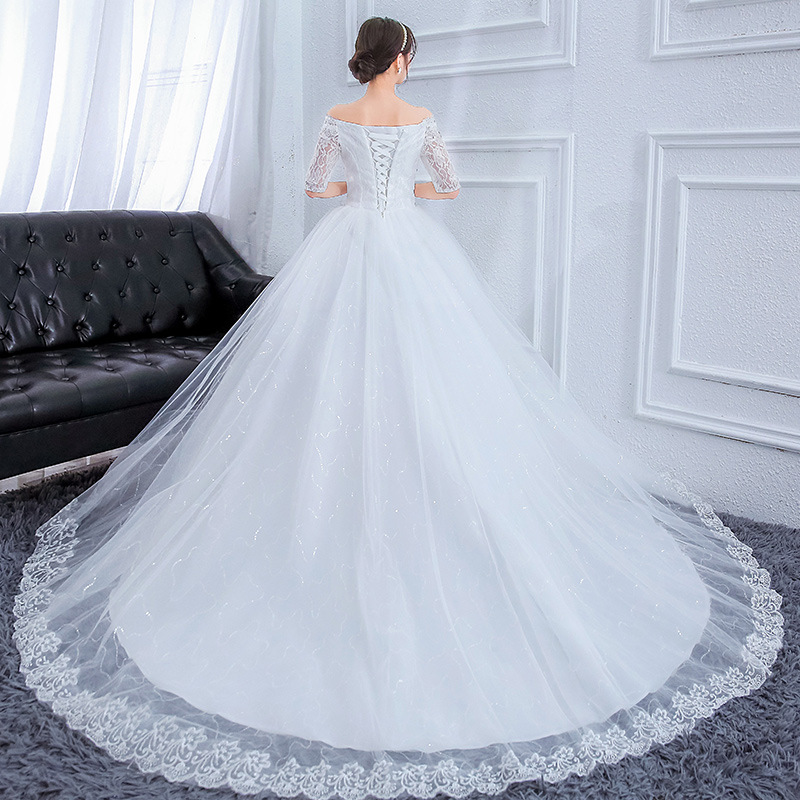 | nameOriginal | 2024 new high-end lace belt sleeve off-shoulder large size wedding dress white knot fat man with fat tail |