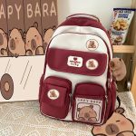 2024 New Kapibala Schoolbag Red Capybara Chiropractic Style High Color Value Large Capacity Schoolbag for Primary School Students