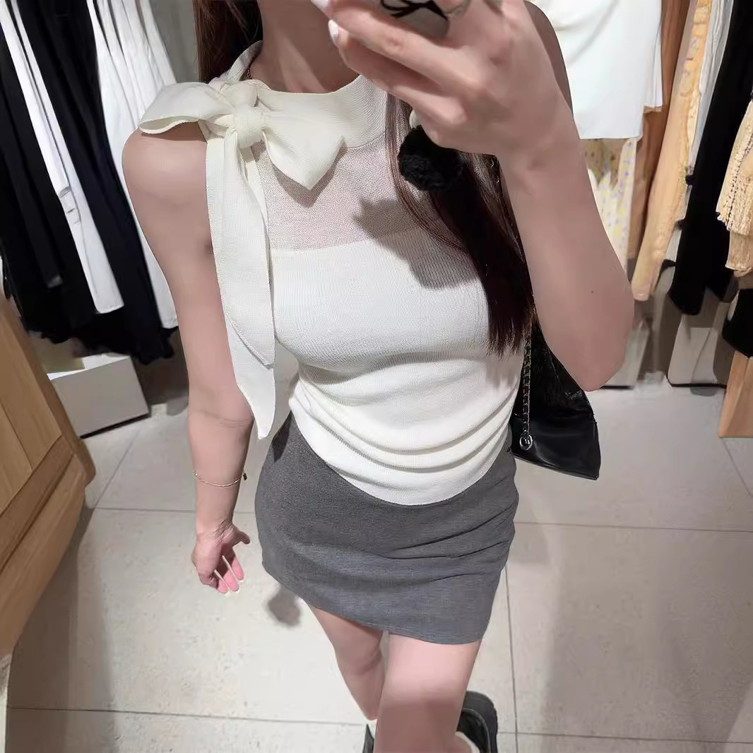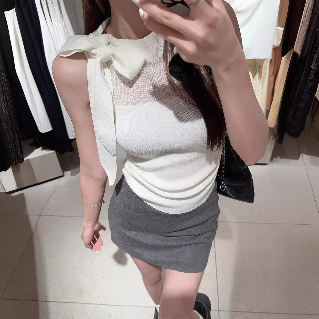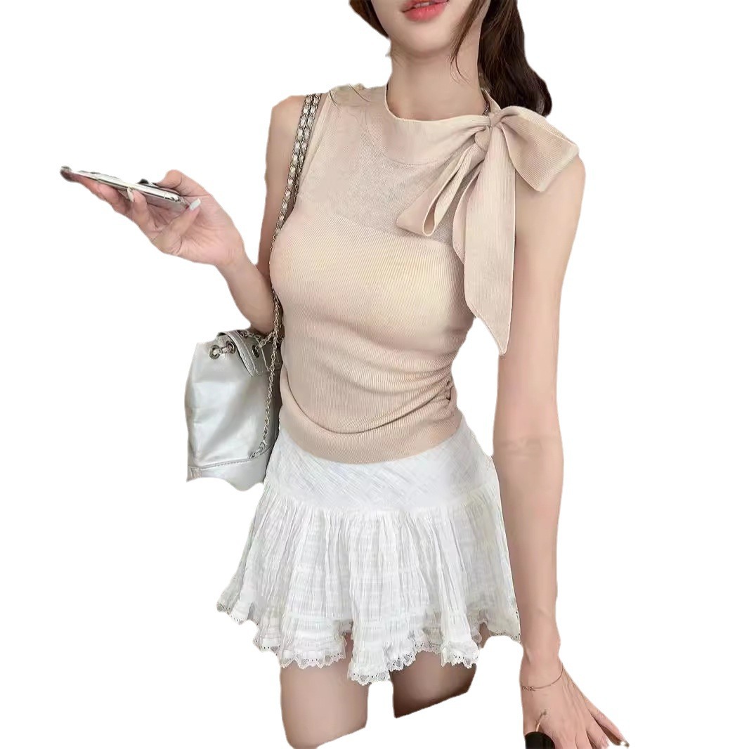 | nameOriginal | 2024 New Lace-Up Bow Knitted Vest New French Style Chic apricot Pleated Slim-Fit Sleeveless Top for Outer Wear |