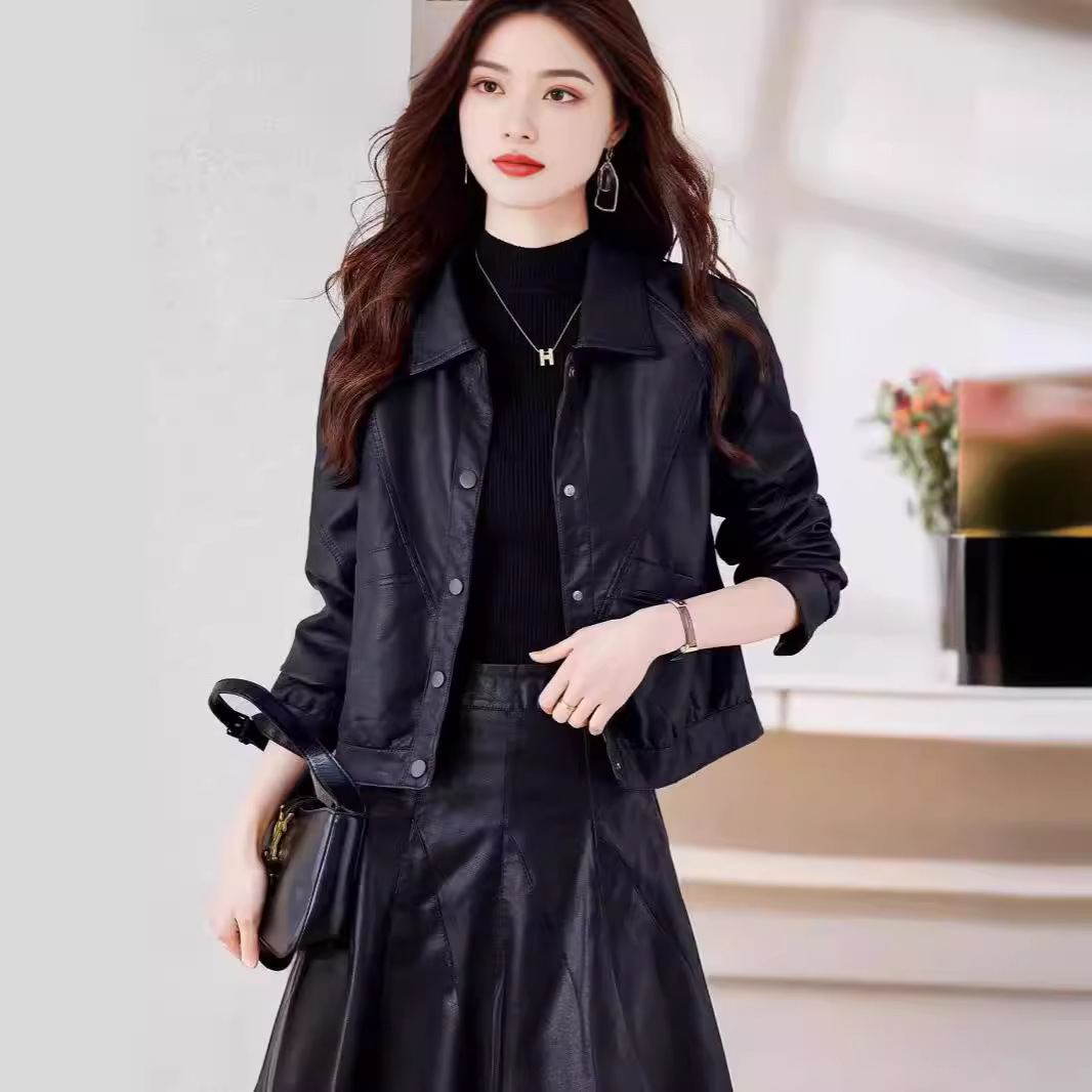 | nameOriginal | 2024 New Leather Jacket Women's Short Fashionable Simple Spring and Autumn Thin Loose Slimming Motorcycle Simulation Leather Jacket |