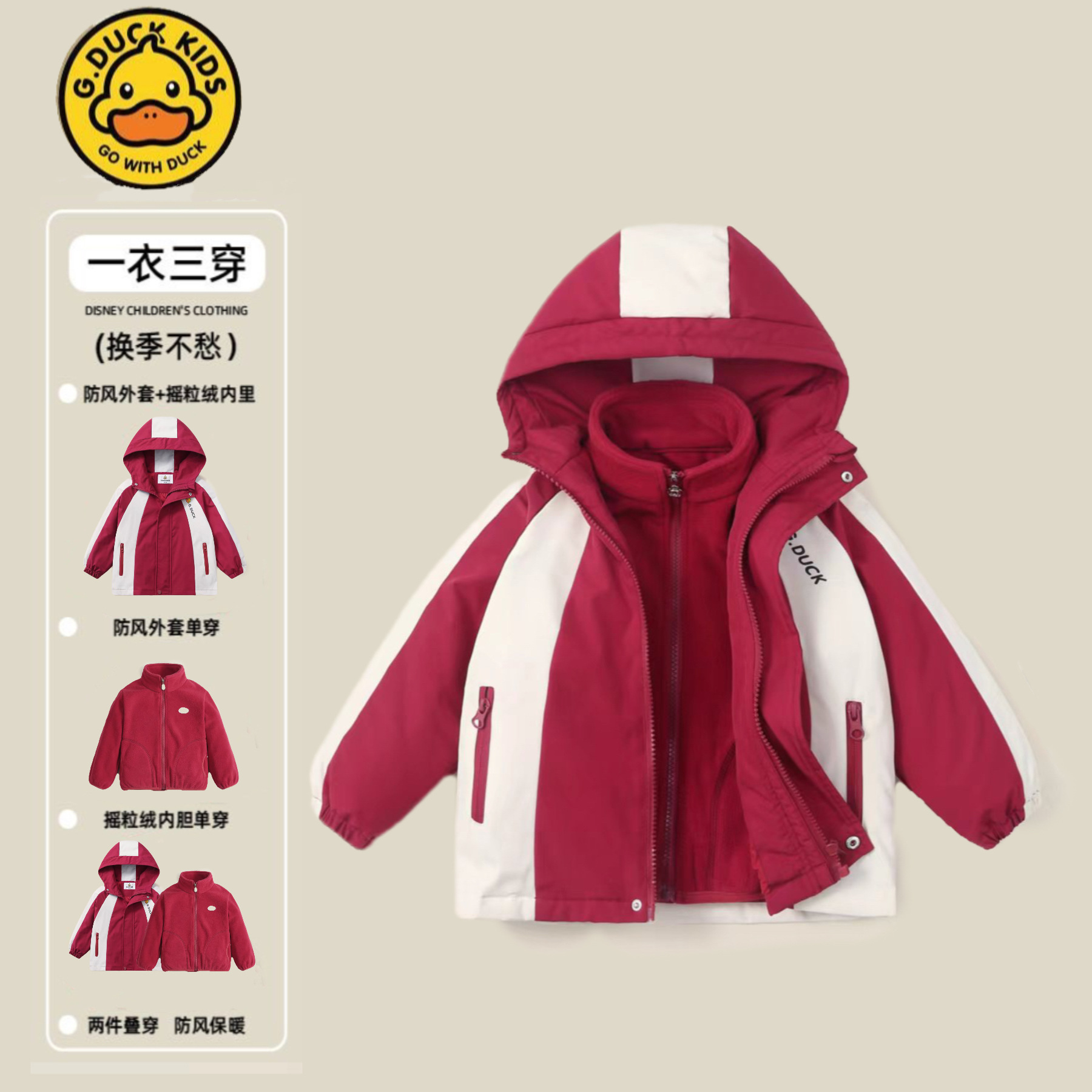 | nameOriginal | 2024 new little yellow duck children's jacket new three-in-one boys' and girls' spring and autumn Baby Kindergarten |