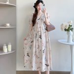| nameOriginal | 2024 new maternity dress with butterfly flower loose V-neck lantern sleeves western style pregnant women dress |