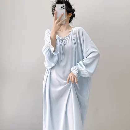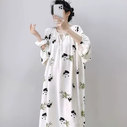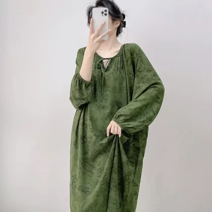 | nameOriginal | 2024 New National Style Nightgown for Women Spring and Summer New Chinese Style Cotton Silk Pajamas Lazy Style Cotton Silk Home Floor-Mopping Dress |