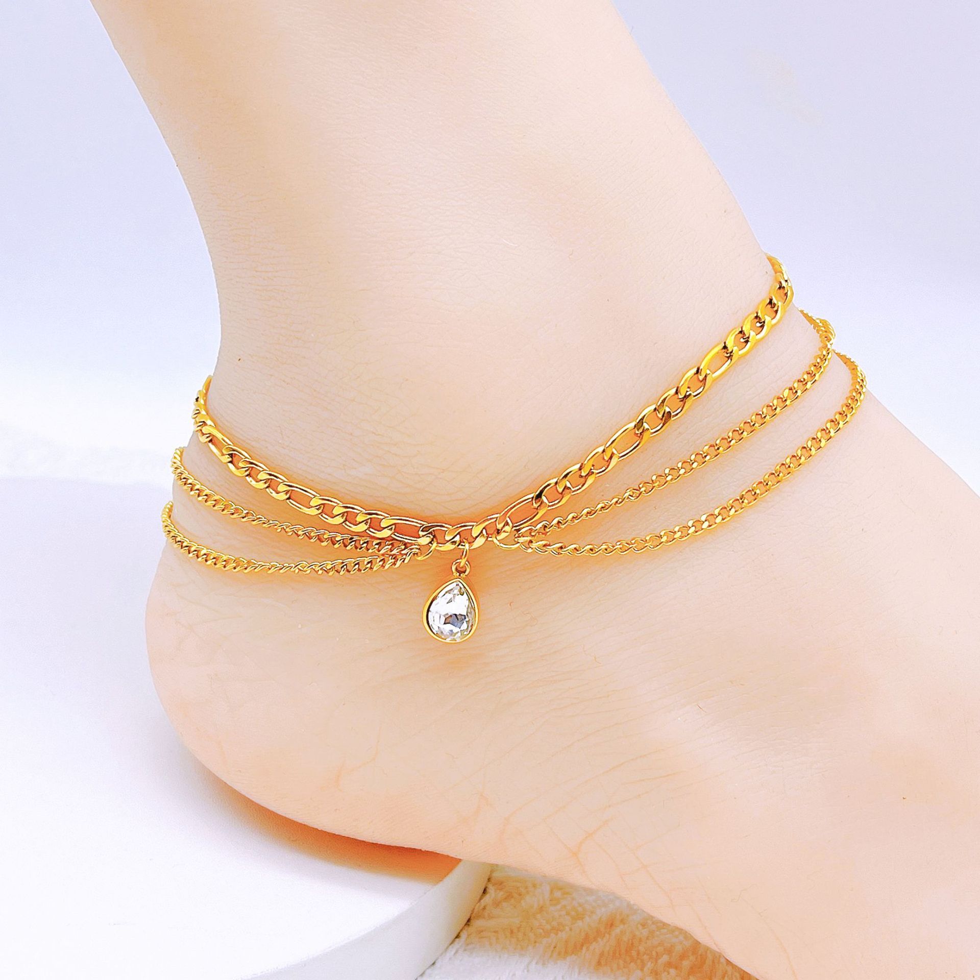 2024 New Ocean Series Starfish Scallop Anklet Titanium Steel Water Drops Imitation Zircon Multi-Layer Stacked Anklet No Fade