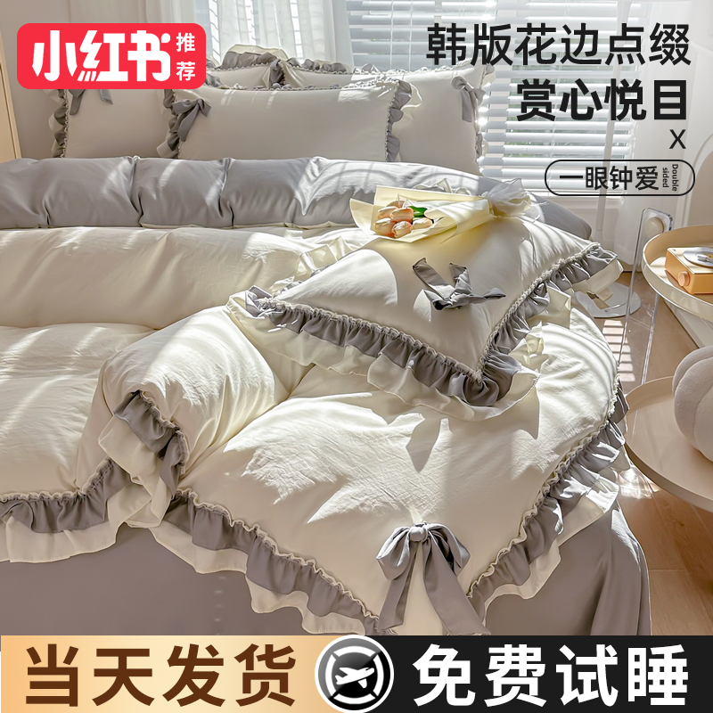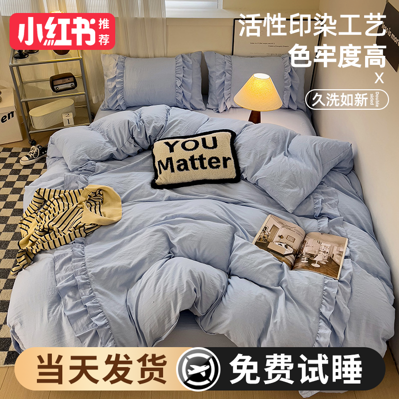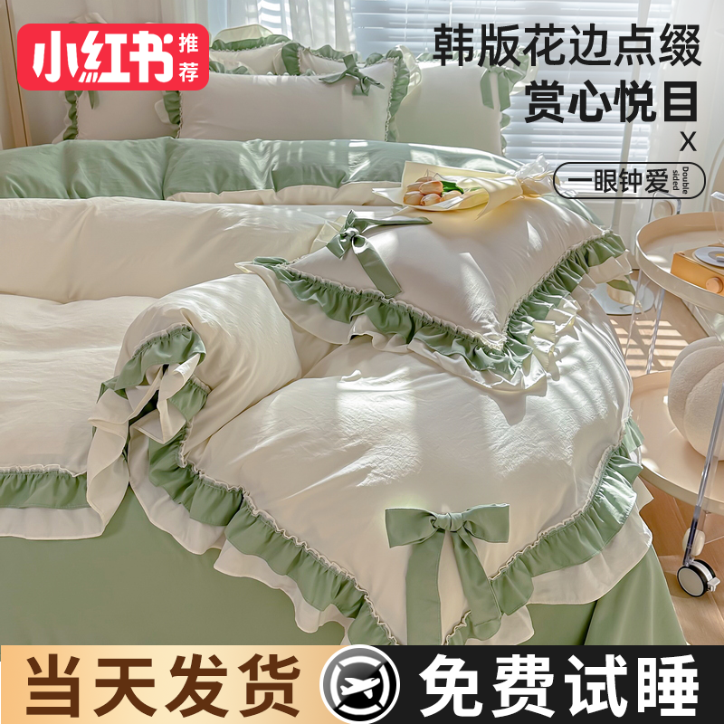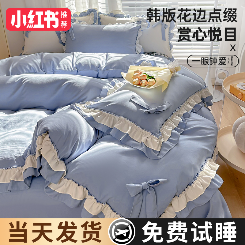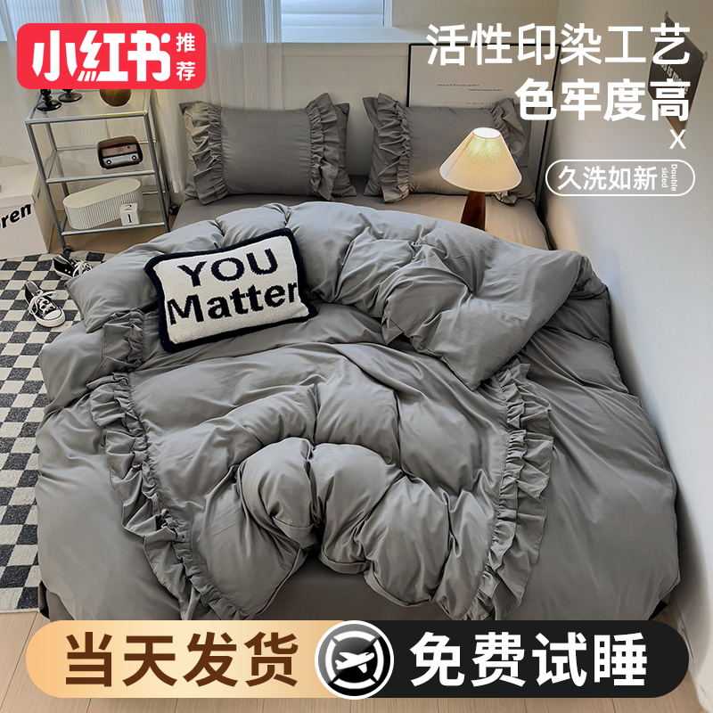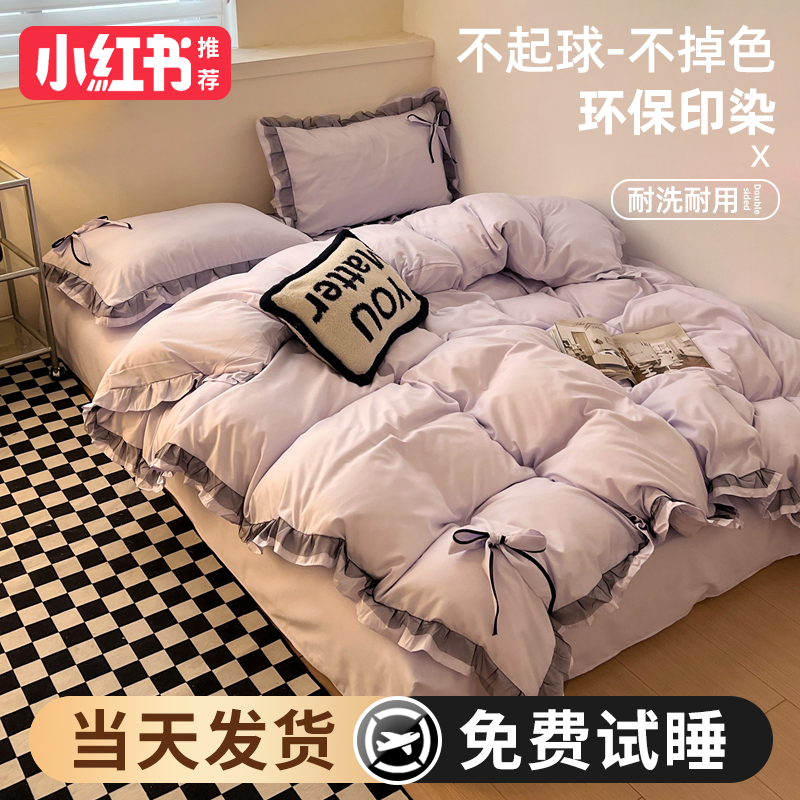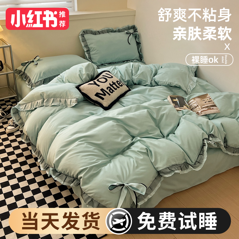 2024 new princess style four-piece summer bedding set, sheet quilt cover, non-cotton pure cotton three-piece set