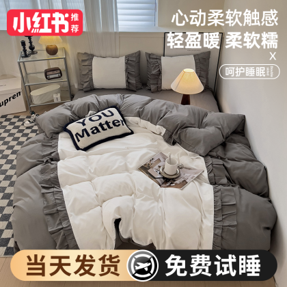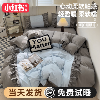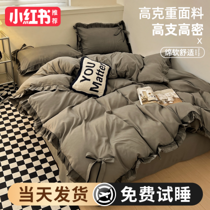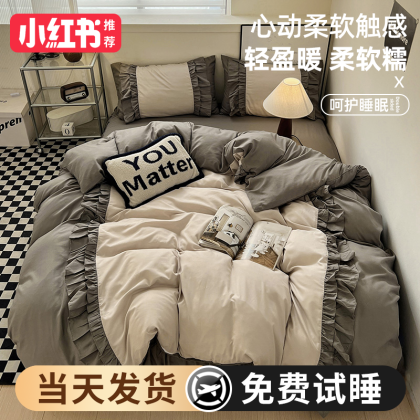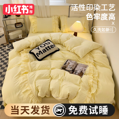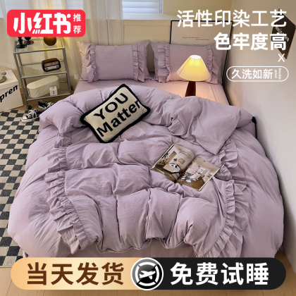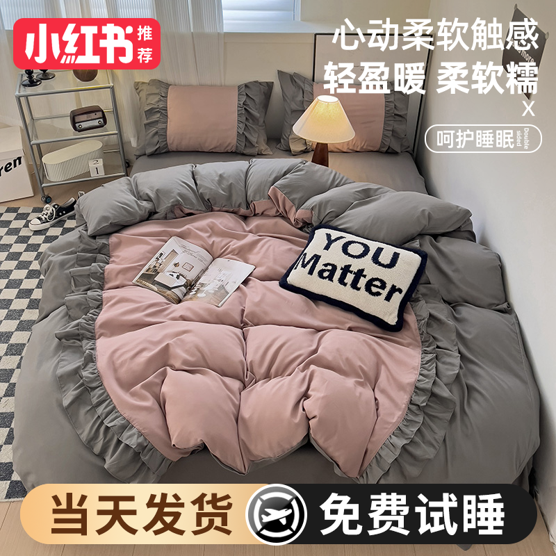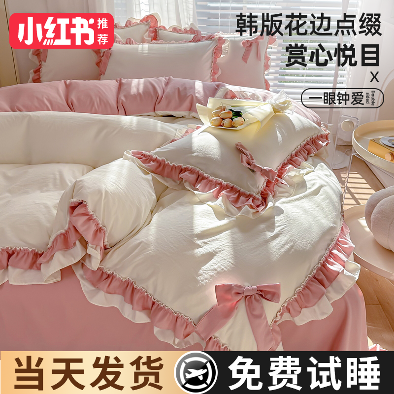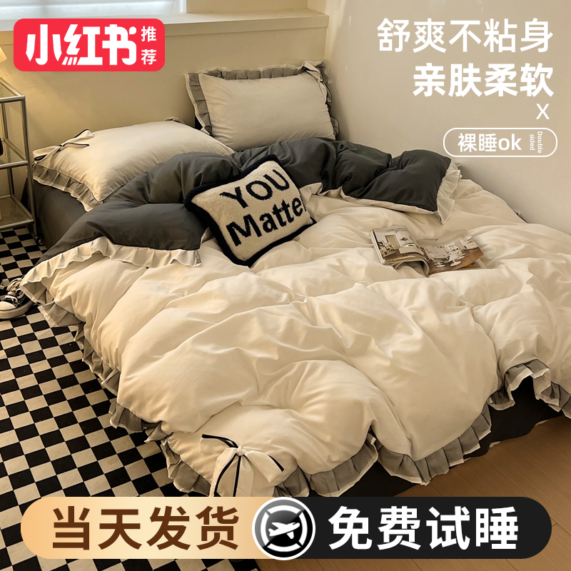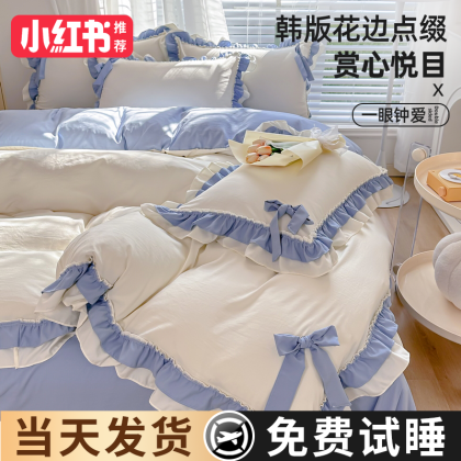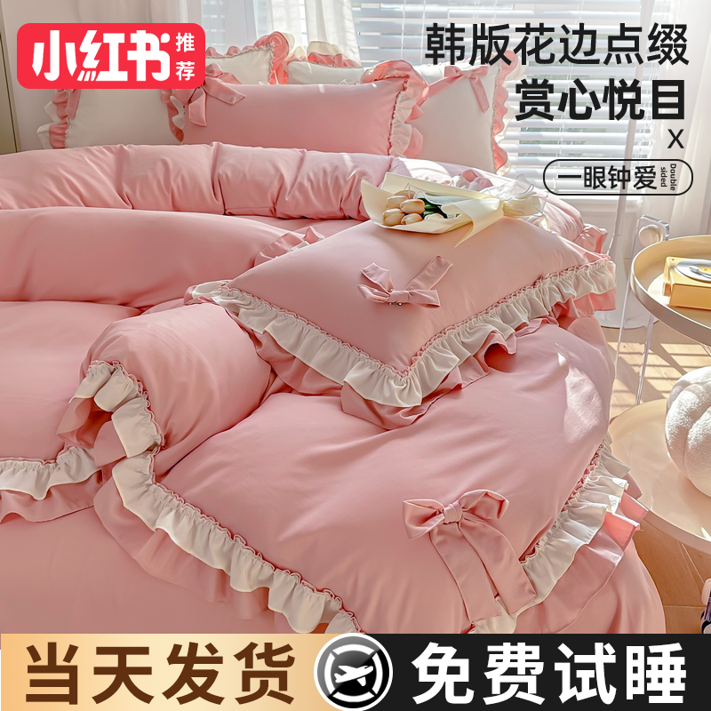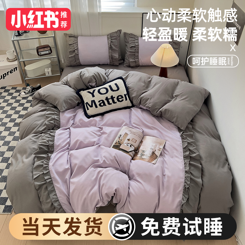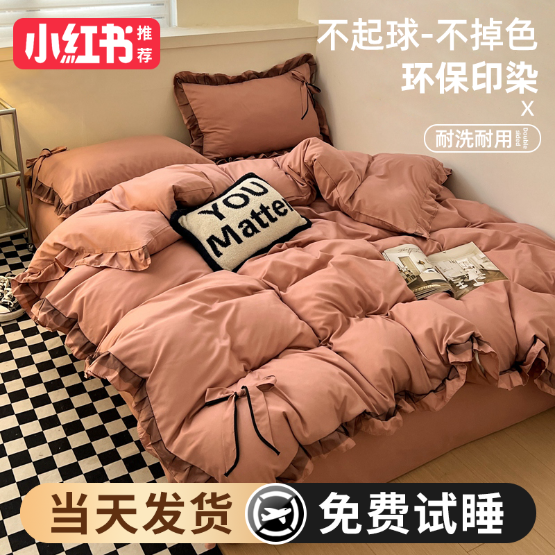 2024 new princess style four-piece summer bedding set, sheet quilt cover, non-cotton pure cotton three-piece set