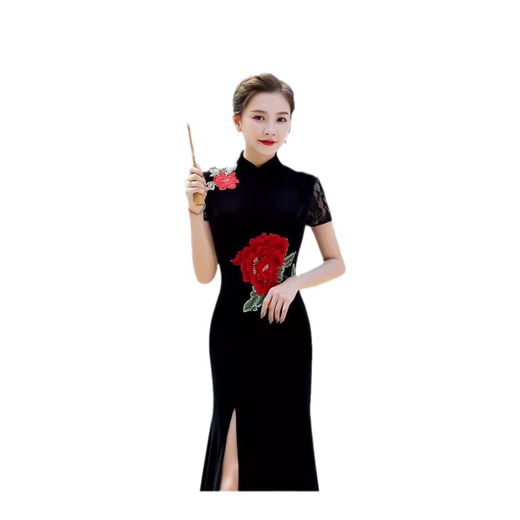 | nameOriginal | 2024 new product Mao teacher with black long fishtail slim cheongsam catwalk cheongsam costume improved elegant |