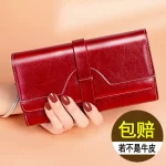 محفظة نسائية جديدة من الجلد الخالص لعام 2024 بأجواء عصرية طويلة من جلد البقر