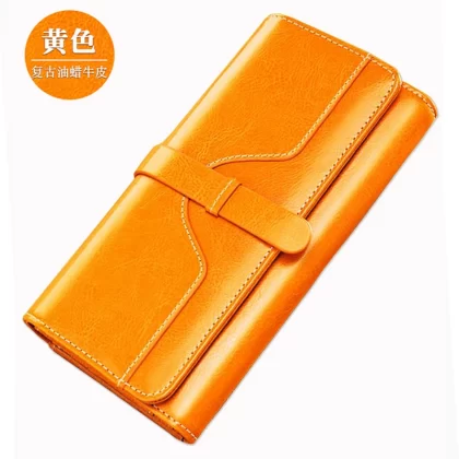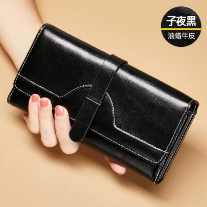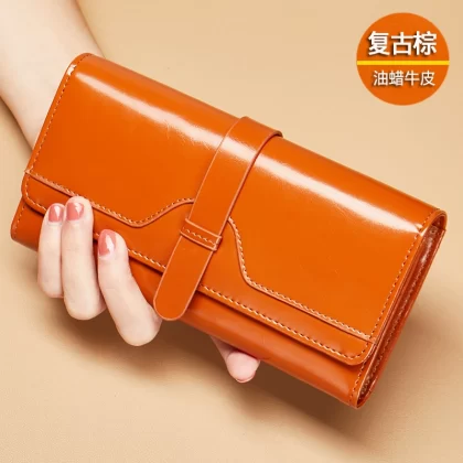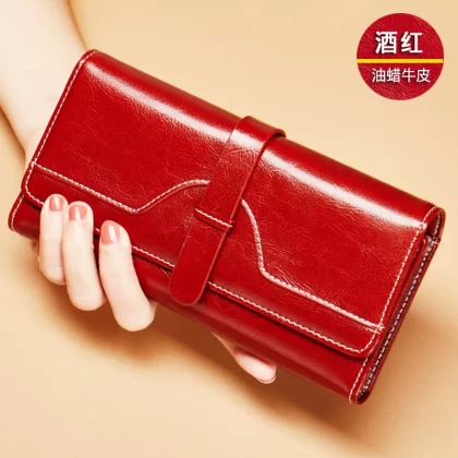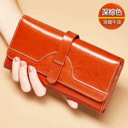 محفظة نسائية جديدة من الجلد الخالص لعام 2024 بأجواء عصرية طويلة من جلد البقر