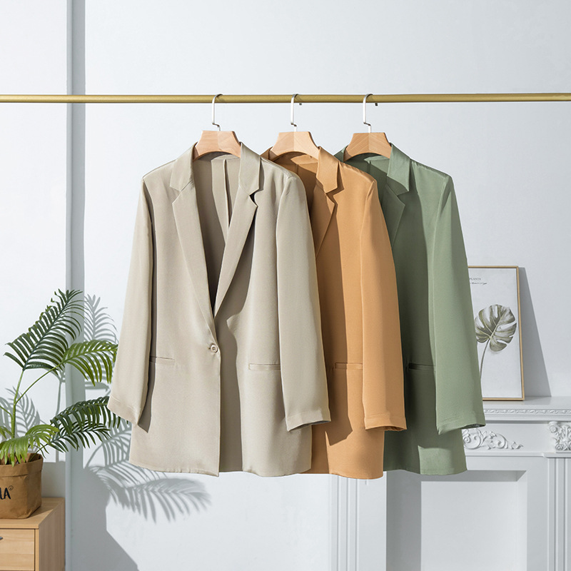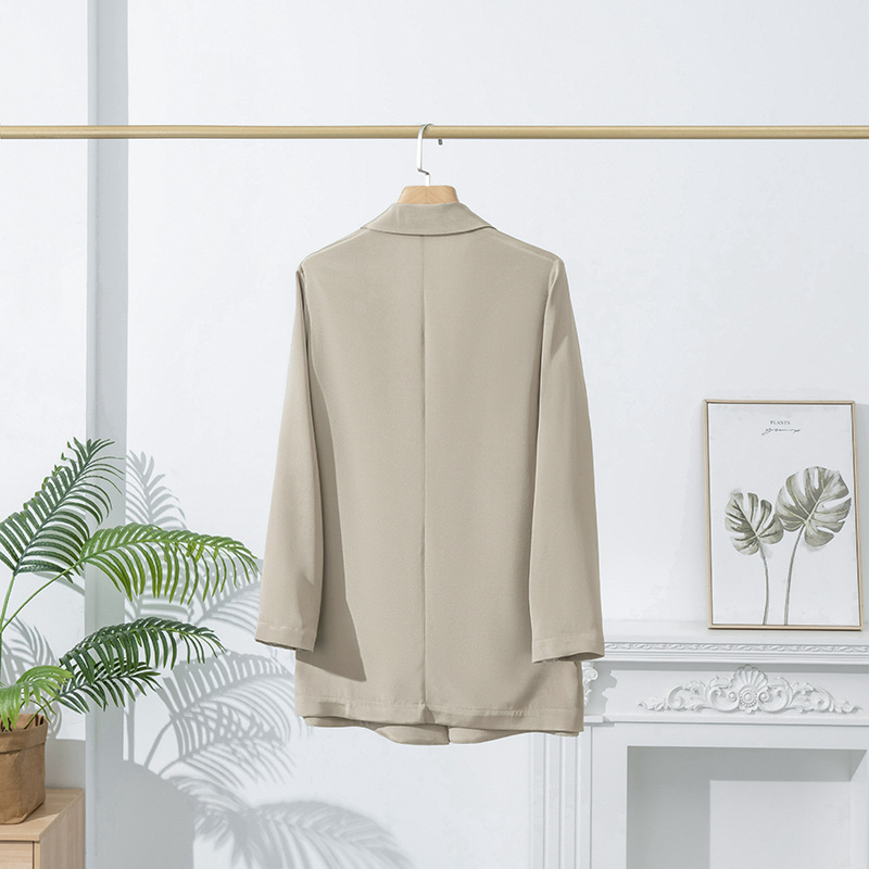 | nameOriginal | 2024 new silk suit women's spring and autumn mulberry silk commuter loose top long sleeve lapel mid-length coat |
