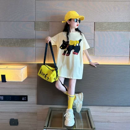 | nameOriginal | 2024 new skirt girls big children short sleeve t-shirt |