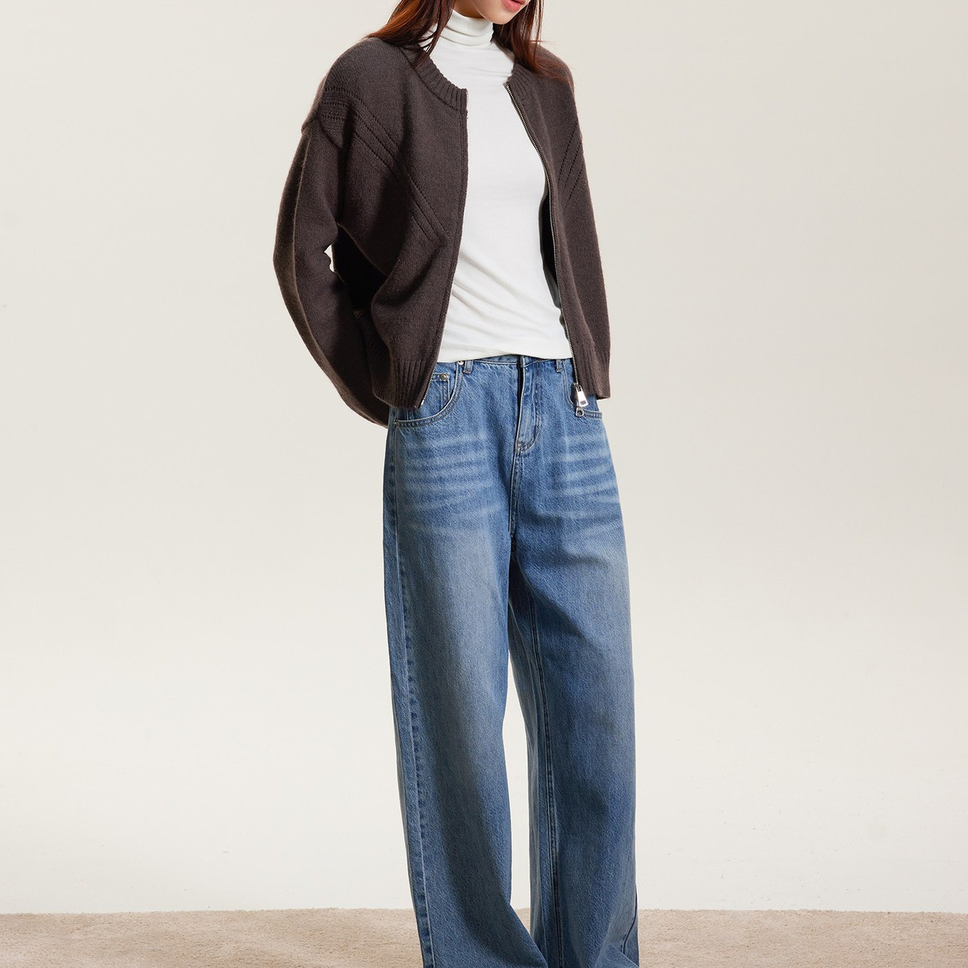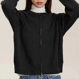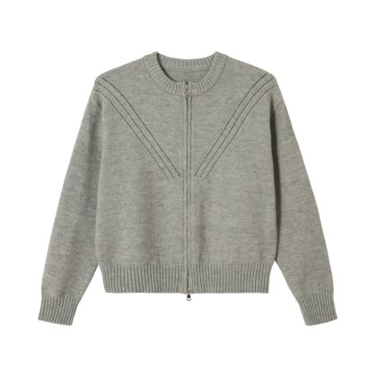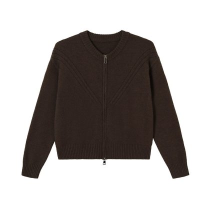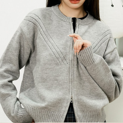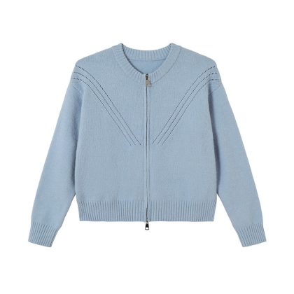 2024 New Slim Autumn Round Neck Zipper Knitted Cardigan Women's Top Casual Women's Short Sweater Coat Women