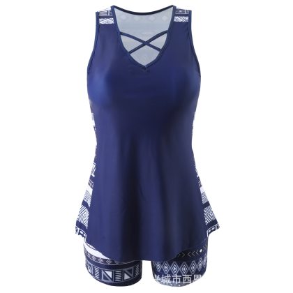 | nameOriginal | 2024 new spot Amazon cross-border Europe and the United States large size cross with boxers conservative ladies tankini swimsuit |