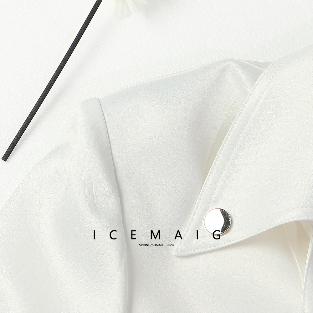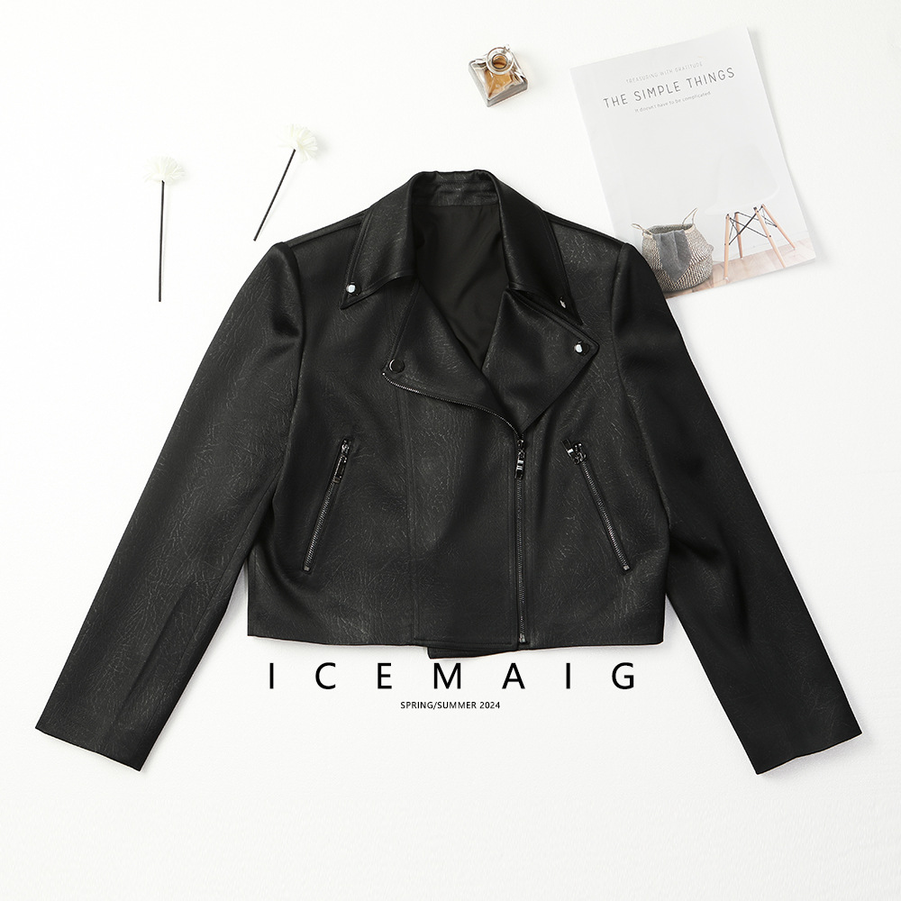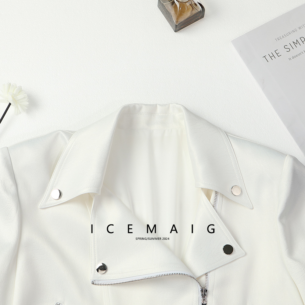 2024 New Spring and Summer Elegant Acetic Acid Short Lapel Zipper Motorcycle Fashion Jacket Coat