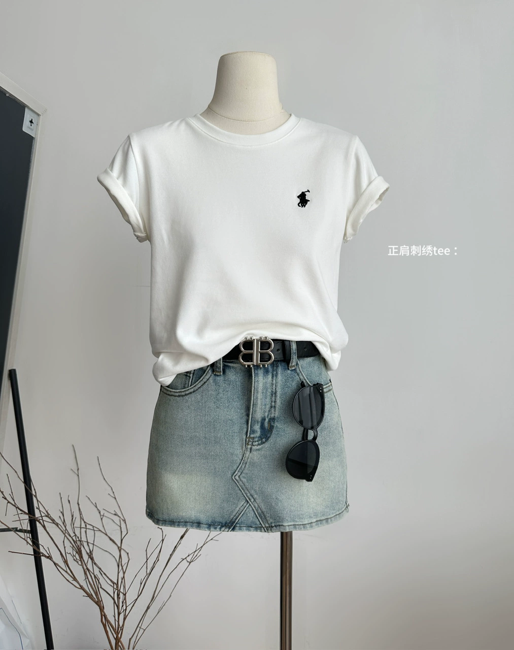 | nameOriginal | 2024 new spring and summer pony embroidered short-sleeved T-shirt for women summer new design niche slim fit top |