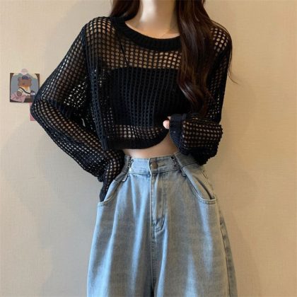 | nameOriginal | 2024 New Spring Thin Hollow Knitted Sweater Women's Loose Outer Wear Western Style Short Outer Blouse Hot Girl Top |