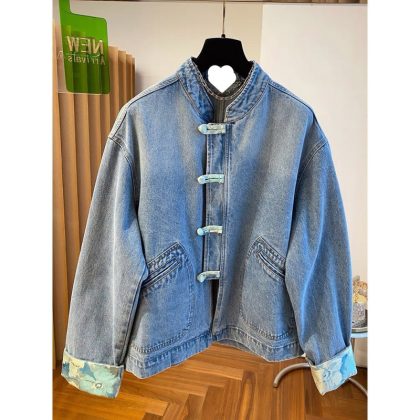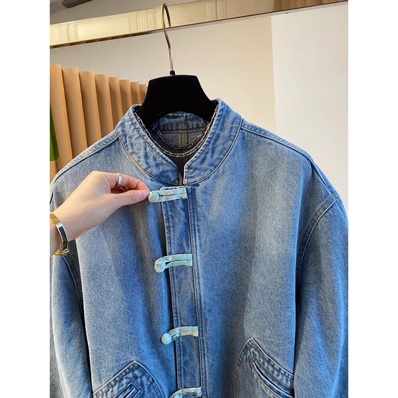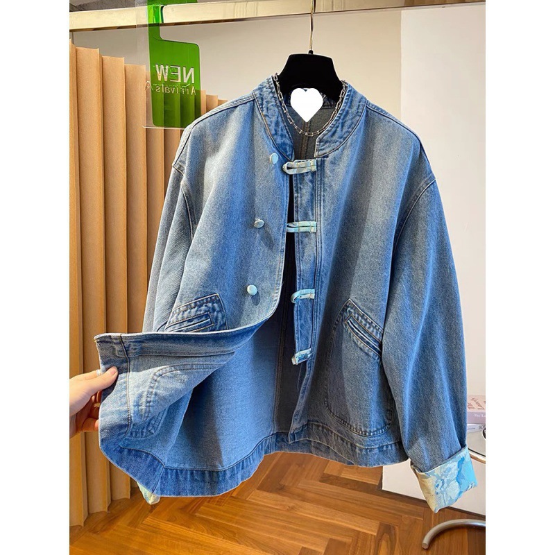 2024 نمط جديد جديد النمط الصيني ضوء النمط الوطني مشبك الدنيم معطف المرأة الربيع والخريف قصيرة شعبية بالجملة هذا العام