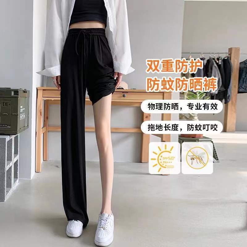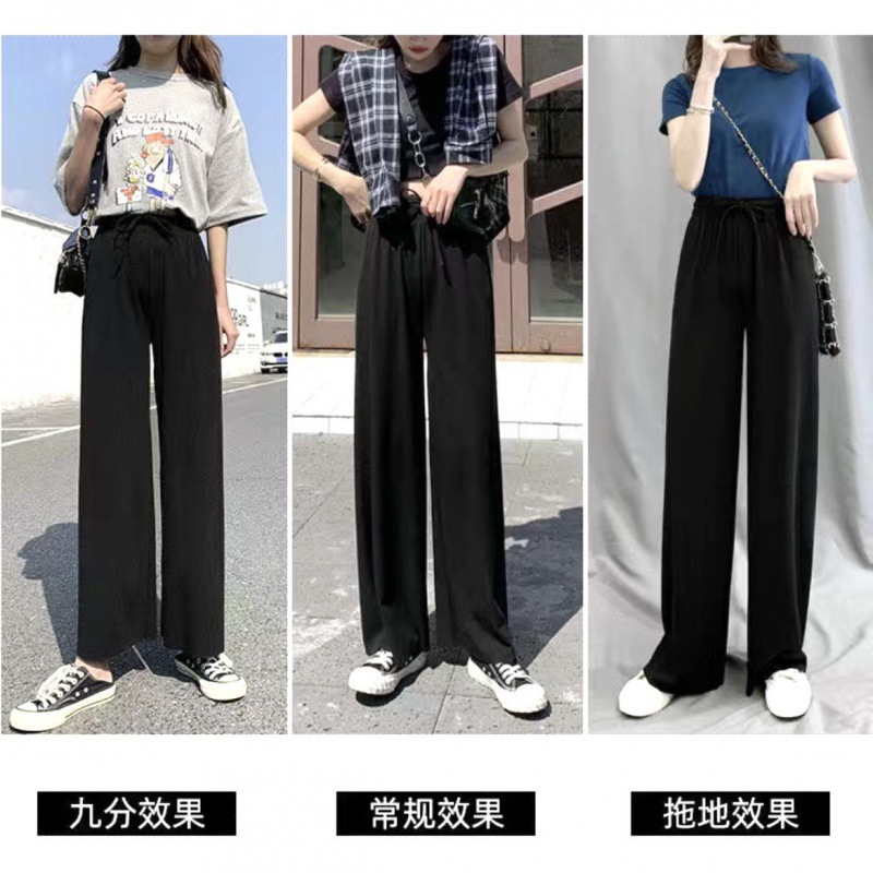 | nameOriginal | 2024 New Summer Black Wide Leg Pants Women's Online Popular Pants Slimming High Waist Dape Small Dape Ice Silk Pants |