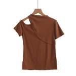 | nameOriginal | 2024 new summer coffee color short-sleeved T-shirt for women, irregular right shoulder, half-sleeved, tight-fitting, off-the-shoulder T-shirt top |
