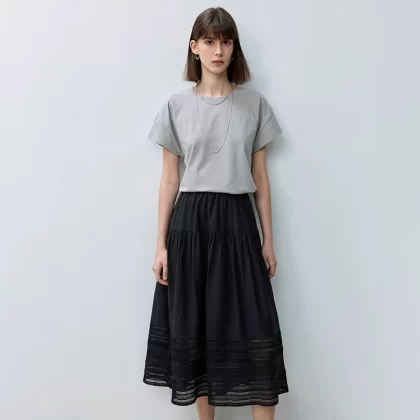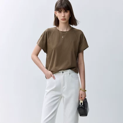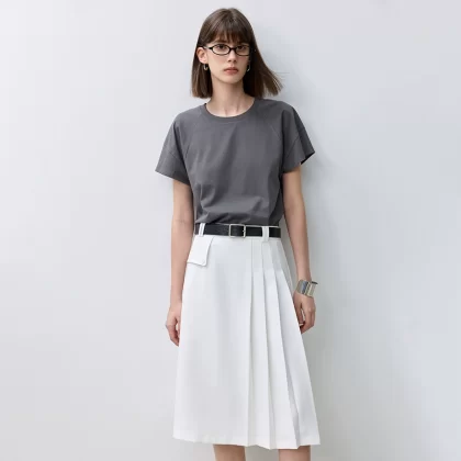 تي شيرت صيفي صيفي 2024 يومي نقي اللون بأكمام قصيرة