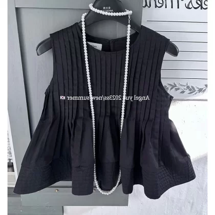| nameOriginal | 2024 new summer Korean version sleeveless sweet pleated shirt simple and versatile temperament age-reducing vest top for women trendy |