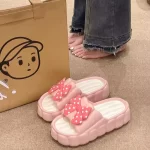 2024 جديد شباشب صيفية للنساء لطيف القوس وطئ الشعور سميكة وحيد زيادة المضادة للانزلاق نعال شاطئ لملابس خارجية