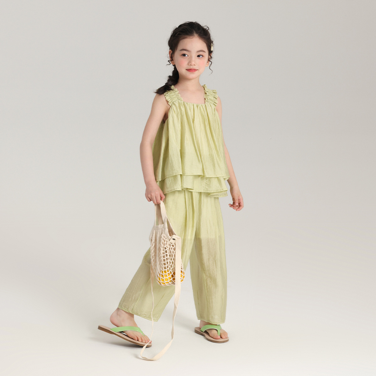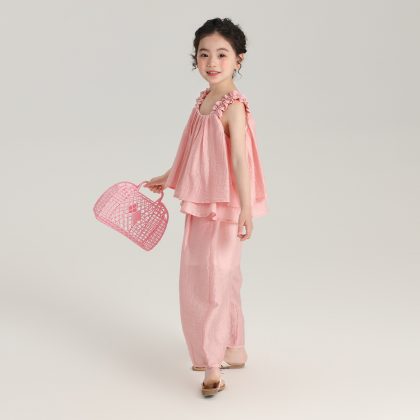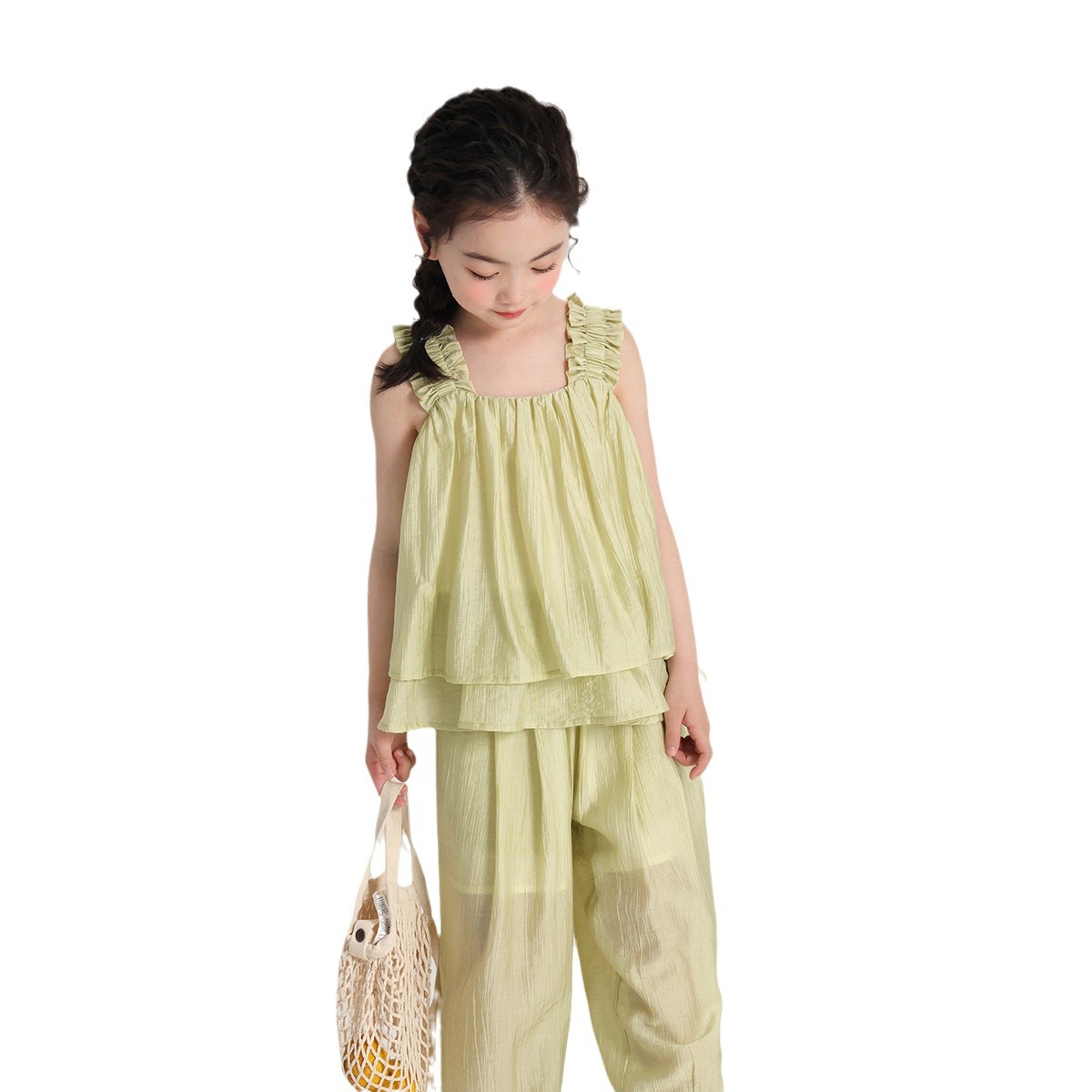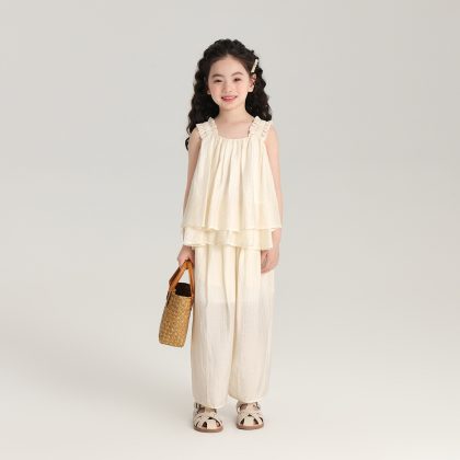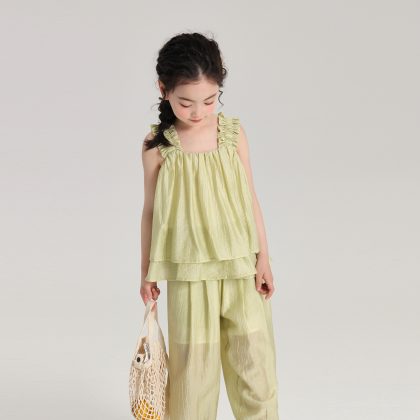 | nameOriginal | 2024 New Summer Sleeveless Tencel Pleated Texture Girls' Sling Wide Shoulder Strap Girls' Loose Comfortable Vest |
