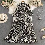 | nameOriginal | 2024 new summer style high-end elastic waist pattern V-neck slim fit drapey flesh-covering loose sunscreen wide swing dress for women |