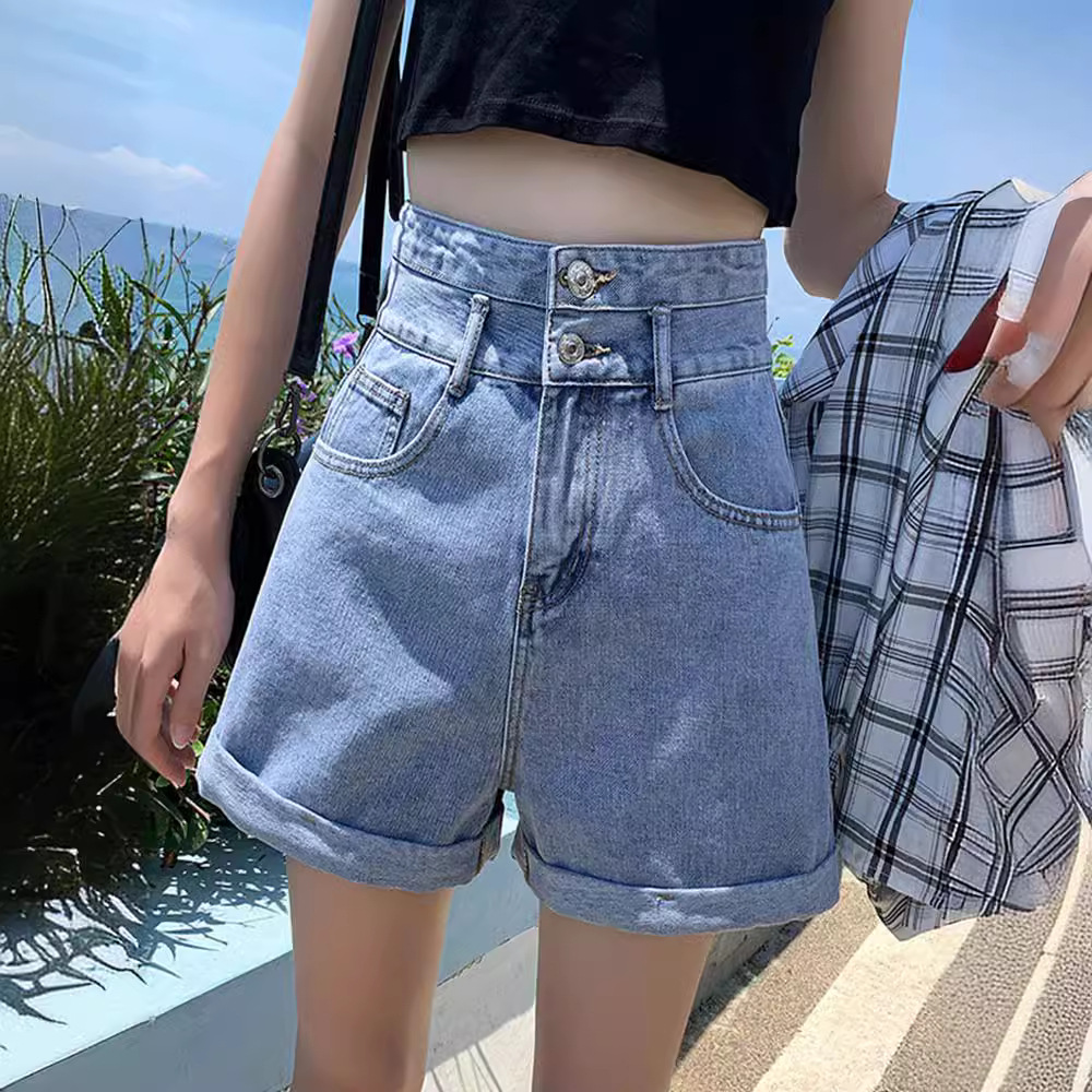 | nameOriginal | 2024 New Super High Waist Denim Shorts Women's Summer Thin Loose Slimming Wide Leg A- shaped Curled Hot Pants Washed |