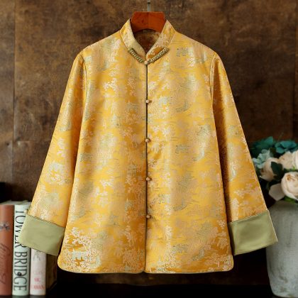 | nameOriginal | 2024 new top buckle straight placket contrast color stitching retro stand collar slim plus size short coat spring and autumn Tang suit |