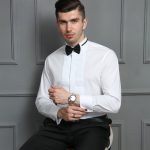 | nameOriginal | 2024 New Tuxedo Stand Collar Wedding Dress Shirt Men's White French Cufflinks Shirt Men's Long Sleeve Shirt |