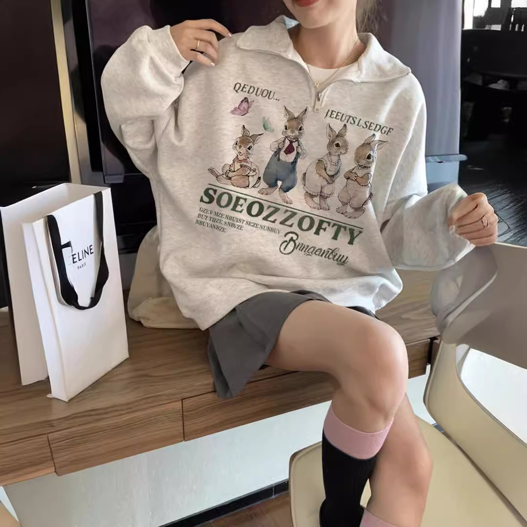 | nameOriginal | 2024 New Vintage Grey Rabbit Sweatshirt Women's Spring and Autumn Loose oversize Harajuku Style Casual All-match Top |