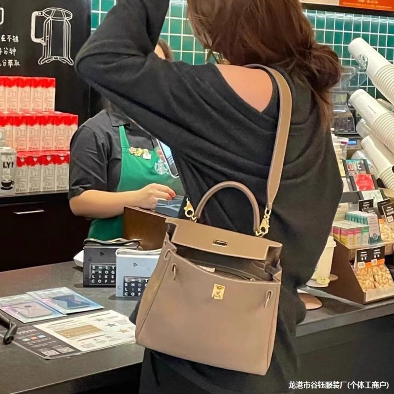 | nameOriginal | 2024 New Wide Shoulder Strap Silver Buckle Kelly Bag Togo Leather Large Capacity Portable Shoulder Crossbody Bag |