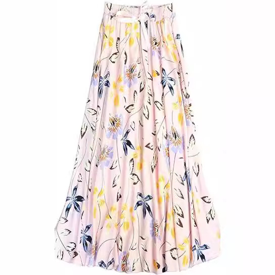 2024 new women's high waist skirt mid-length swing pocket elastic waist A- line bohemian print skirt
