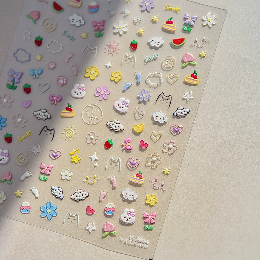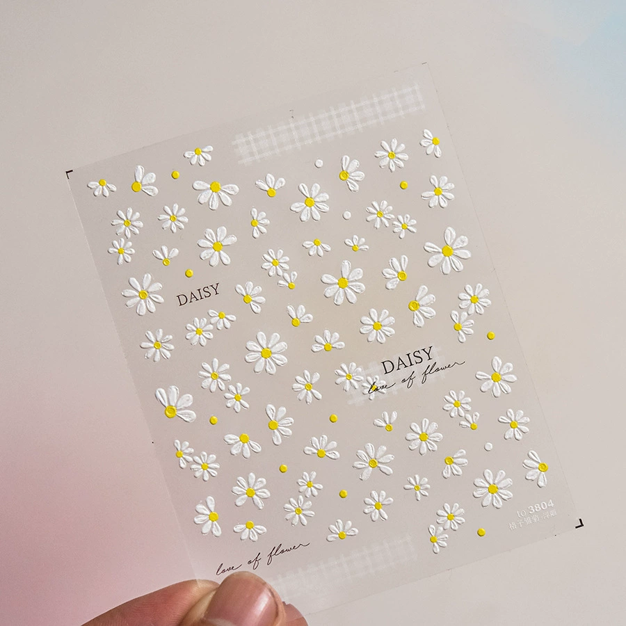 2024 New Year wildflower embossed nail art stickers three-dimensional colorful flower plaid daisy nail sticker decoration