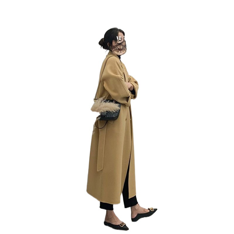 2024 Popular Double-sided Woolen Coat Women's Autumn and Winter Mid-length Knee-high-end British Small Woolen Coat
