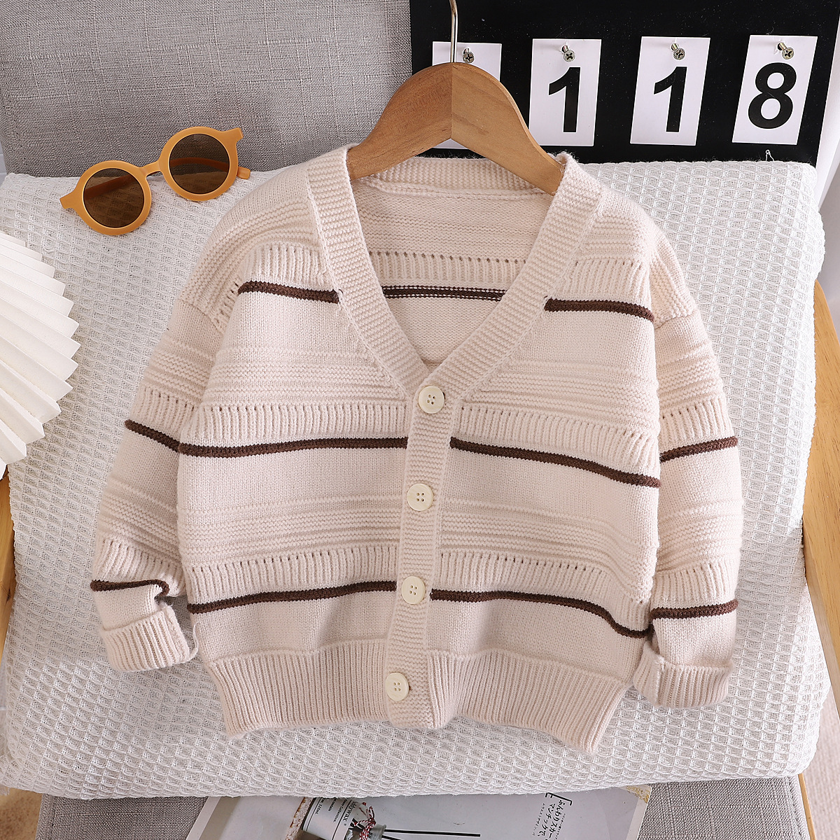 سترة صوفية مخططة واحدة لعام 2024 معطف خريفي للأطفال ملابس جديدة للأطفال من المصنع للبيع بالجملة