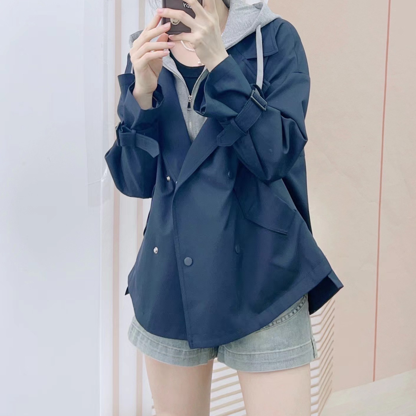 2024 Spring and Autumn Brand Counter New Fashion Casual Joker Stitching Hooded Short Coat Coat 102
