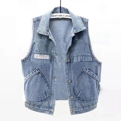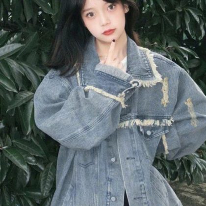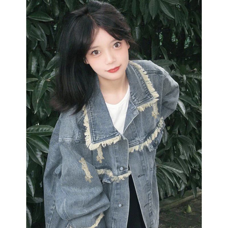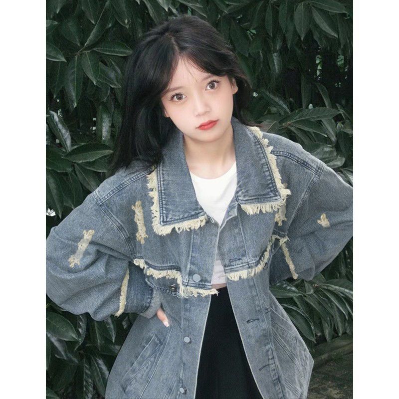 معطف دينم للربيع والخريف لعام 2024 للنساء على الطراز الأمريكي سترة شعبية على الإنترنت متخصصة غير رسمية على الطراز الكوري بتصميم ممزق سترة عصرية