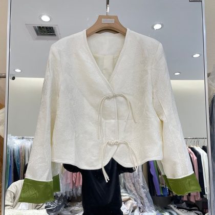 | nameOriginal | 2024 Spring and Autumn European Fashion All-match V-neck Short Coat Women's Jacquard Button Pink Elegant Top Women's Thin |