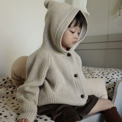| nameOriginal | 2024 spring and autumn hooded knitted girls' coat cardigan super cute fur ball hat boys' sweater all-match Fashion |