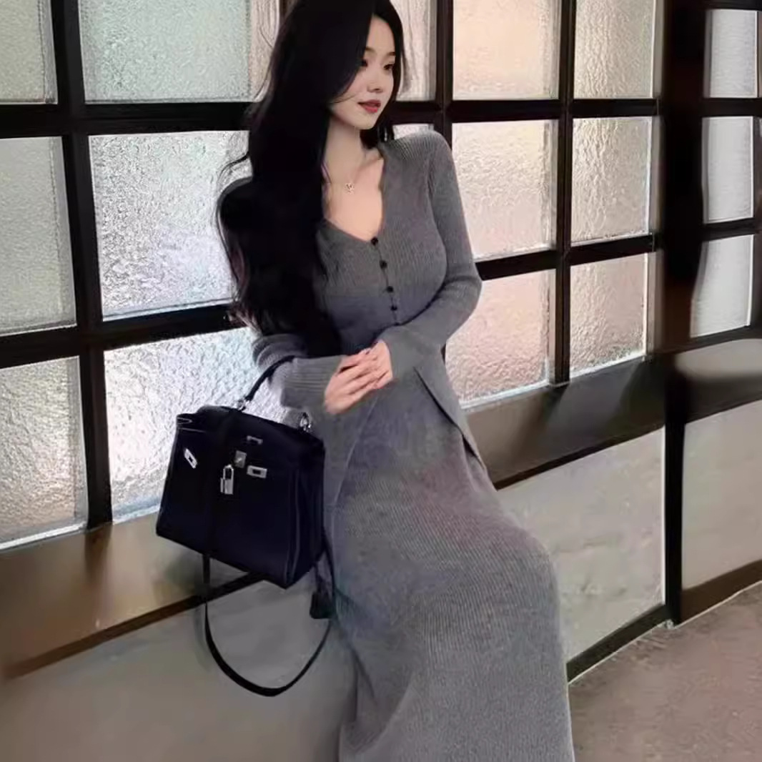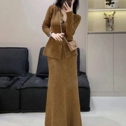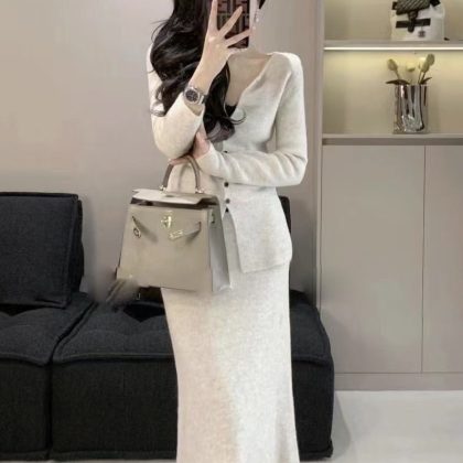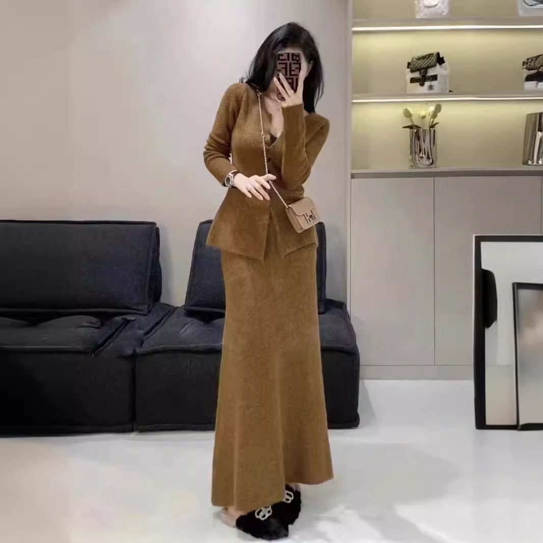 2024 Spring and Autumn New Elegant Style Knitted Cardigan Skirt Two-Piece Slim-Fit Long Sweater suit